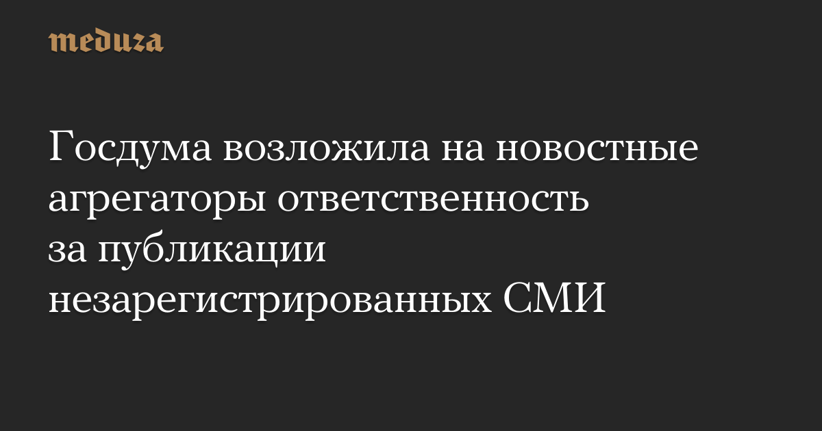 Госдума возложила на новостные агрегаторы ответственность за публикации незарегистрированных СМИ