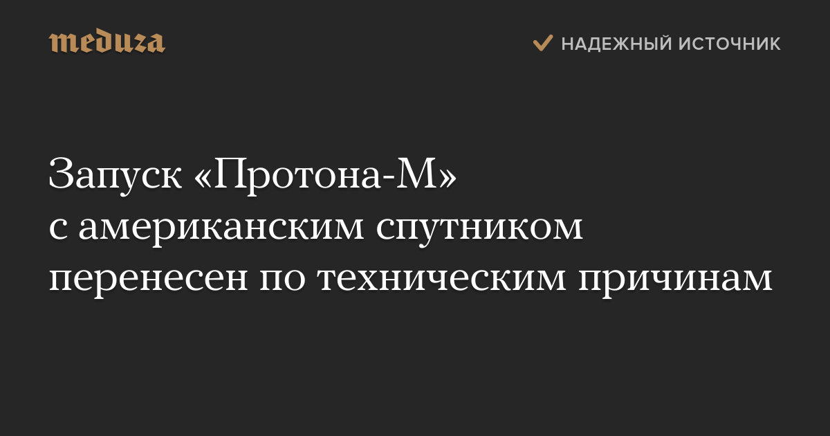 Запуск «Протона-М» с американским спутником перенесен по техническим причинам