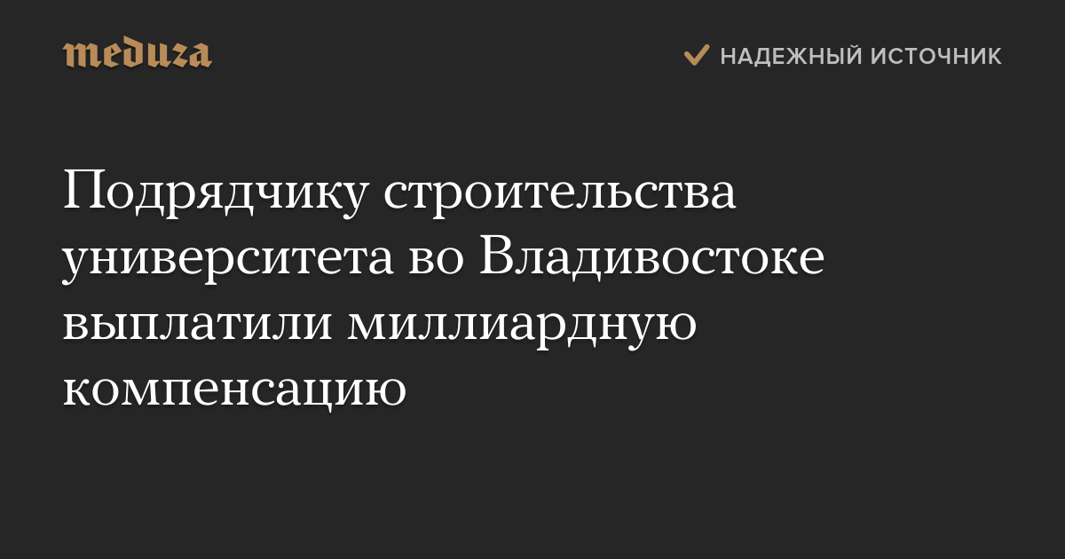 Подрядчику строительства университета во Владивостоке выплатили миллиардную компенсацию
