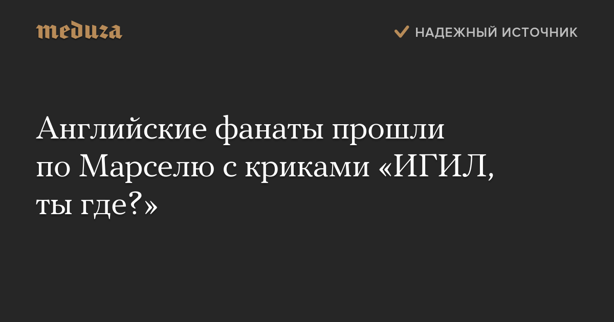 Английские футбольные фанаты, приехавшие в Марсель на чемпионат Европы, в ночь на 10 июня устроили беспорядки в городе. Некоторые из них кричали на улицах «ИГИЛ, ты где?» («Исламское государство» — организация, запрещенная в России как террористическая).