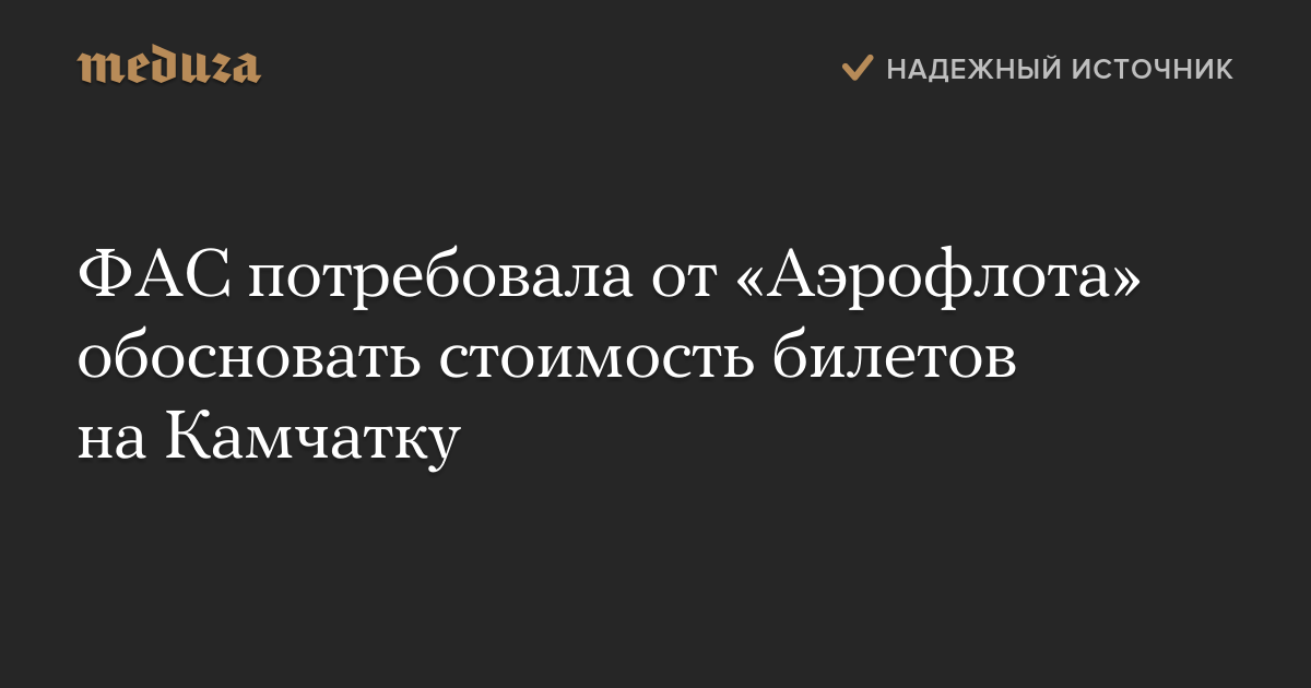 Предоставить данные о ценообразовании, по сведениям издания, ФАС потребовала от «Аэрофлота» после того, как получила жалобы на слишком дорогие билеты на Камчатку. В ФАС подтвердили, что направили в авиакомпанию такой запрос.