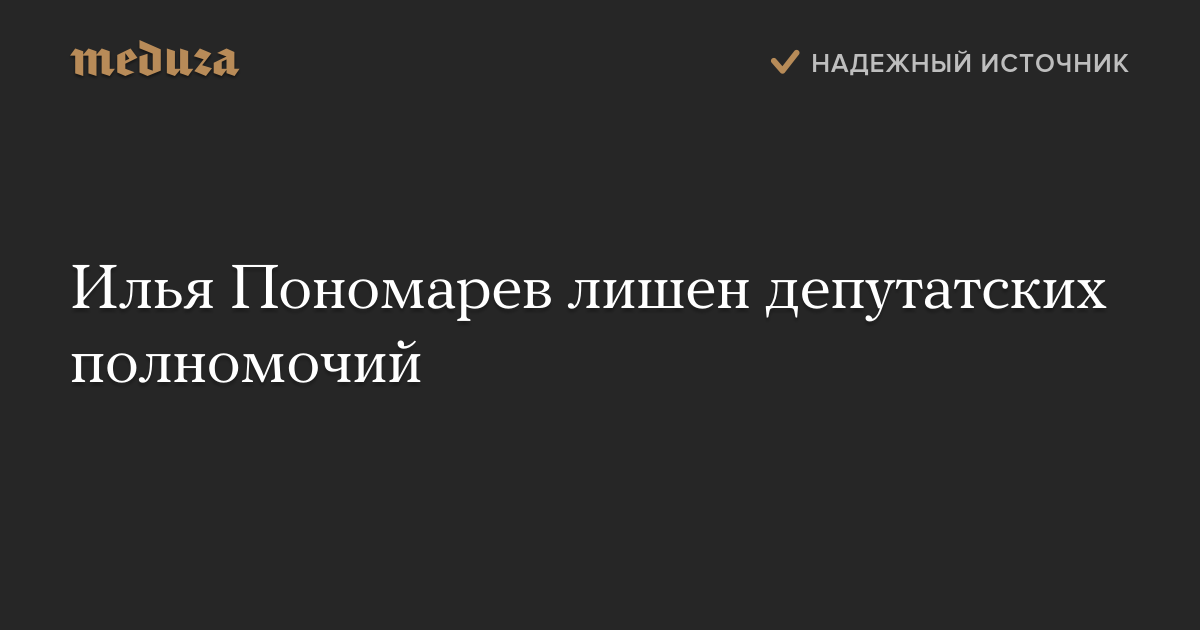 Депутат Госдумы Илья Пономарев лишен мандата за систематические прогулы. Он около года не участвовал в заседаниях парламента. Лишение Пономарева полномочий поддержали 413 депутатов, трое проголосовали против.