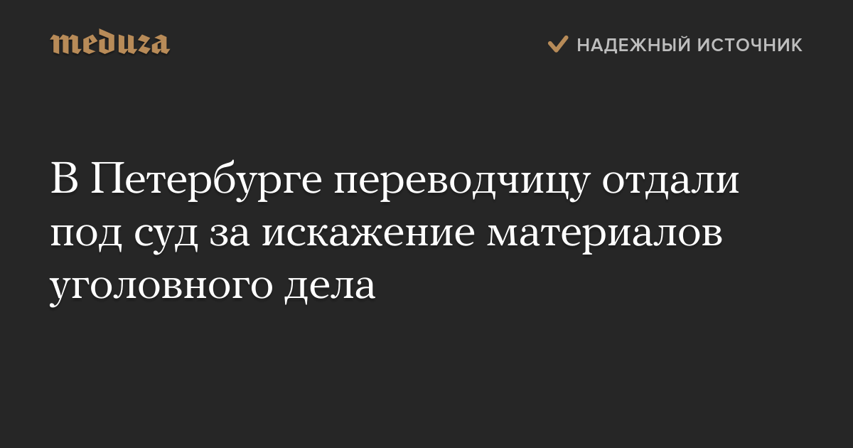 Уголовное дело переводчицы, сообщила городская прокуратура, направлено в Красносельский районный суд Санкт-Петербурга.