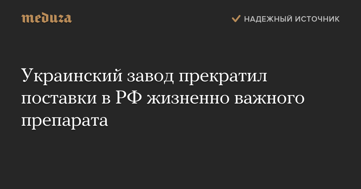 Украинский завод прекратил поставки в РФ жизненно важного препарата