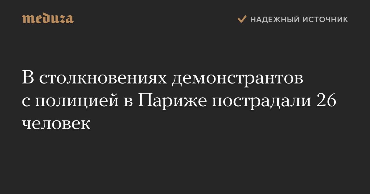 В столкновениях демонстрантов с полицией в Париже пострадали 26 человек