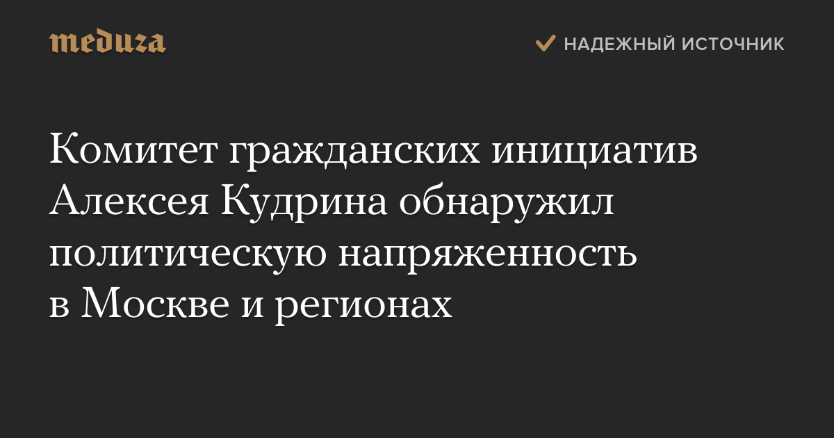 Комитет гражданских инициатив Алексея Кудрина обнаружил политическую напряженность в Москве и регионах