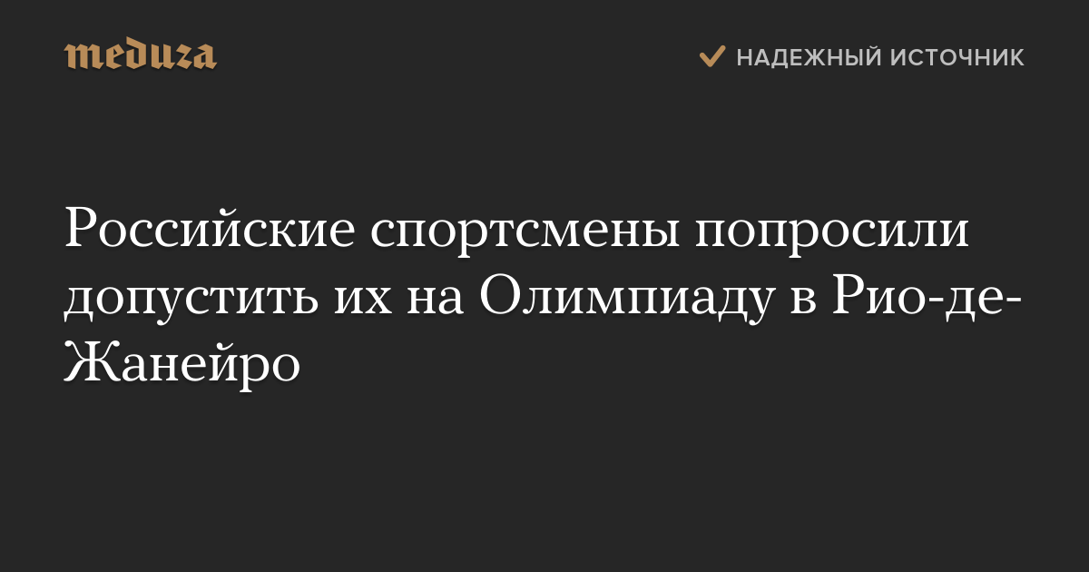 Российские спортсмены попросили допустить их на Олимпиаду в Рио-де-Жанейро