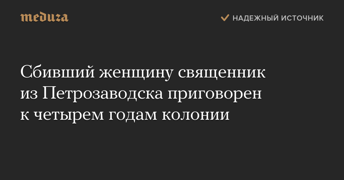 Священник из Петрозаводска Иван Петунов, насмерть сбивший женщину в декабре 2015 года, приговорен к четырем годам колонии поселения.