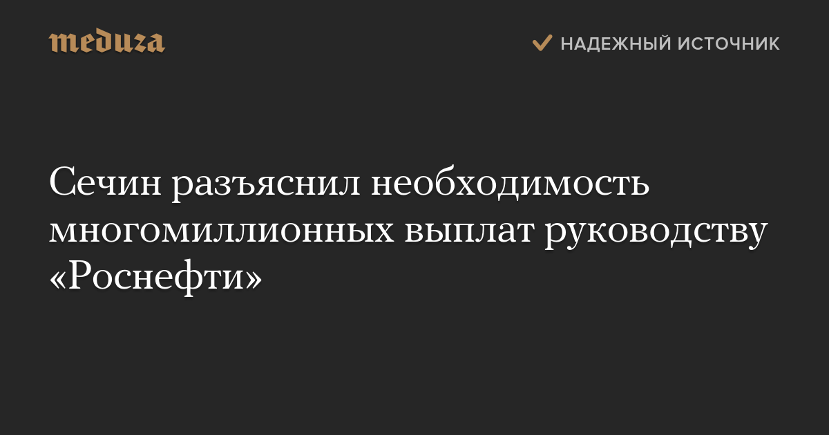 Сечин разъяснил необходимость многомиллионных выплат руководству «Роснефти»