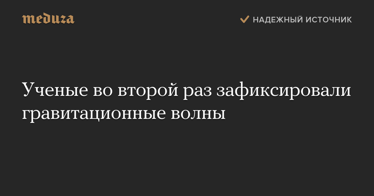 Ученые во второй раз в истории зафиксировали гравитационные волны, существование которых было предсказано Альбертом Эйнштейном. Первый раз о таком открытии было объявлено в феврале 2016 года.