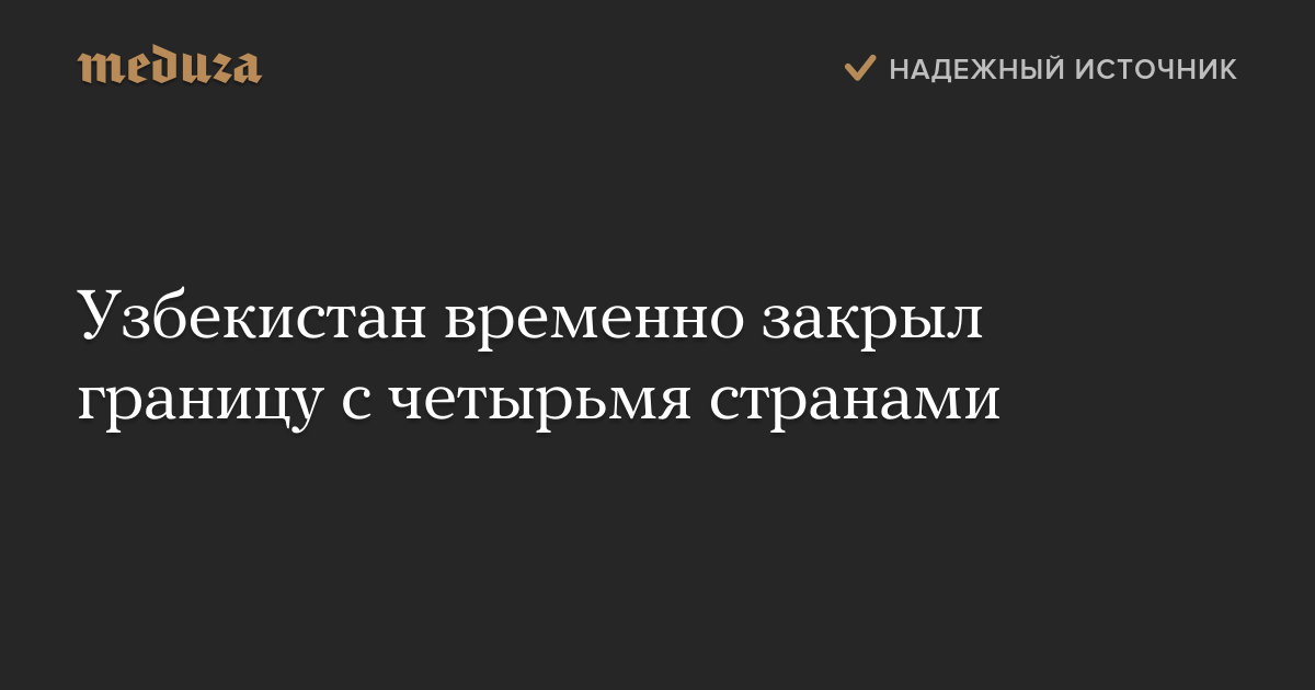 Узбекистан временно приостановил пропуск граждан, транспорта и грузов через границы с Киргизией, Таджикистаном, Казахстаном и Туркменистаном.