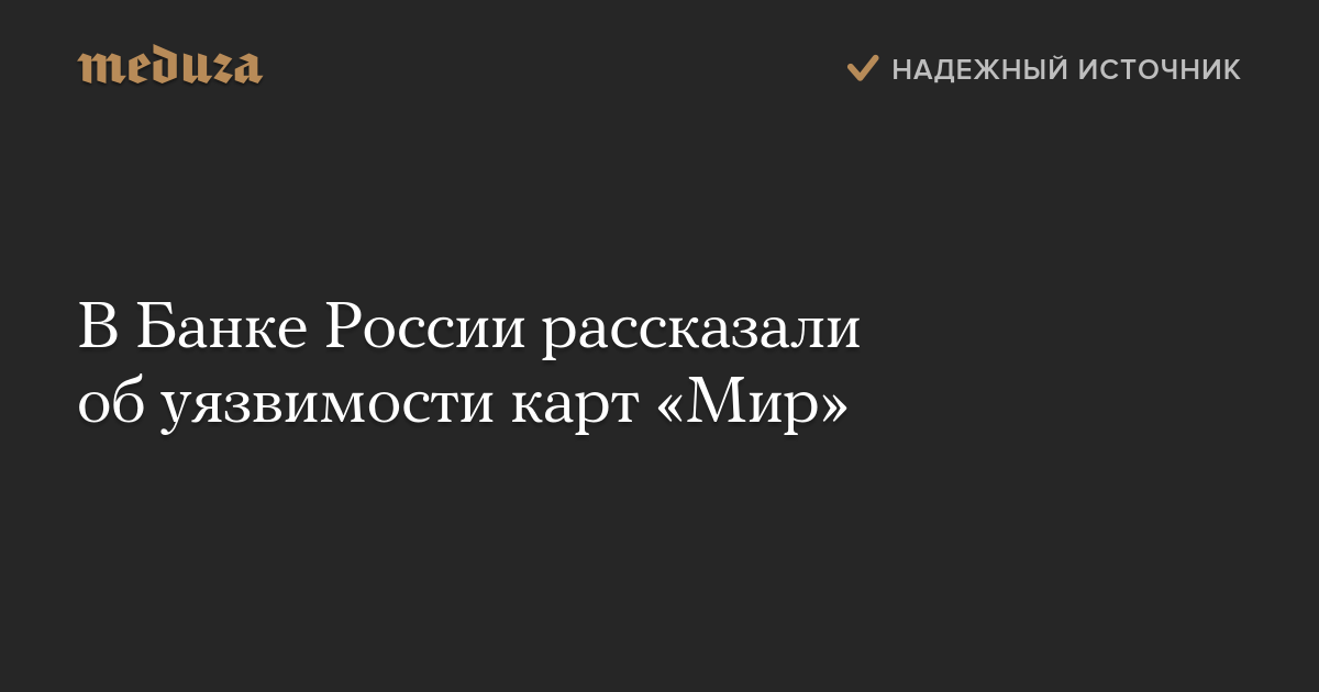 Карты национальной платежной системы «Мир» уязвимы для хакерских атак. Об этом предупредил представитель Банка России Александр Чебарь. По его словам, злоумышленники могут получить информацию о картах через системы дистанционного обслуживания.