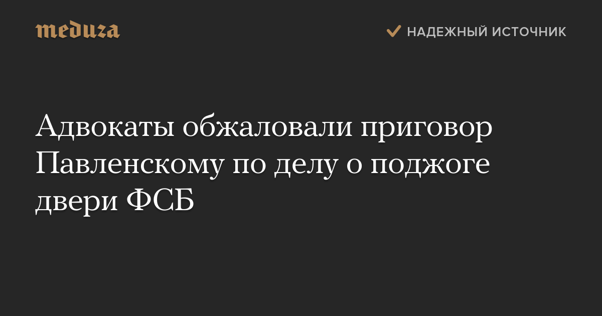 Адвокаты художника Петра Павленского обжаловали приговор по делу об акции «Угроза», в рамках которой он поджег дверь здания ФСБ на Лубянке.