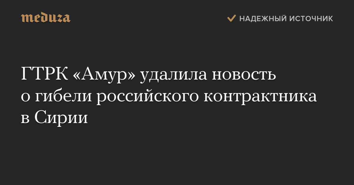 ГТРК «Амур» удалила новость о гибели российского контрактника в Сирии
