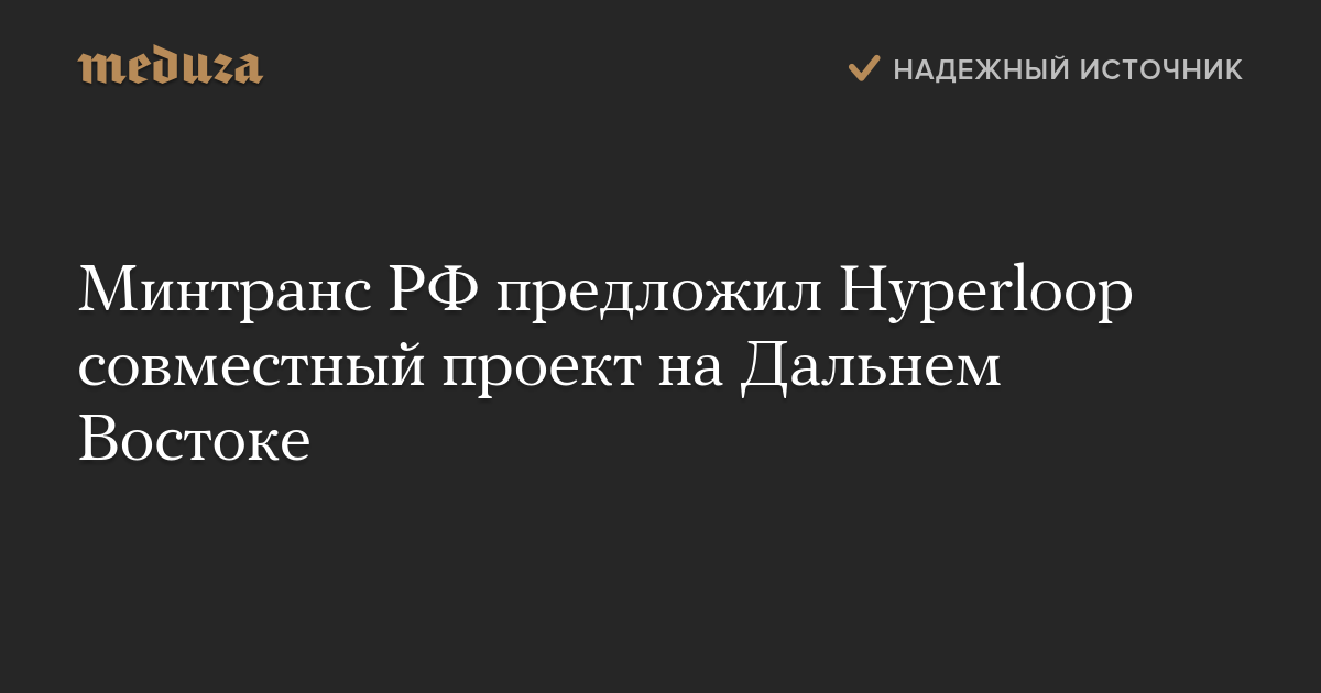 Минтранс РФ предложил Hyperloop совместный проект на Дальнем Востоке