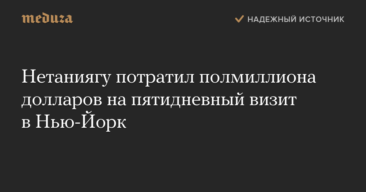 Нетаниягу потратил полмиллиона долларов на пятидневный визит в Нью-Йорк