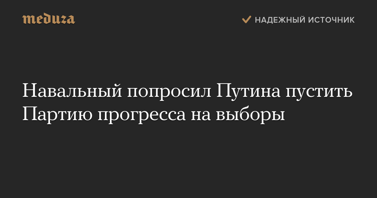 Навальный попросил Путина пустить Партию прогресса на выборы