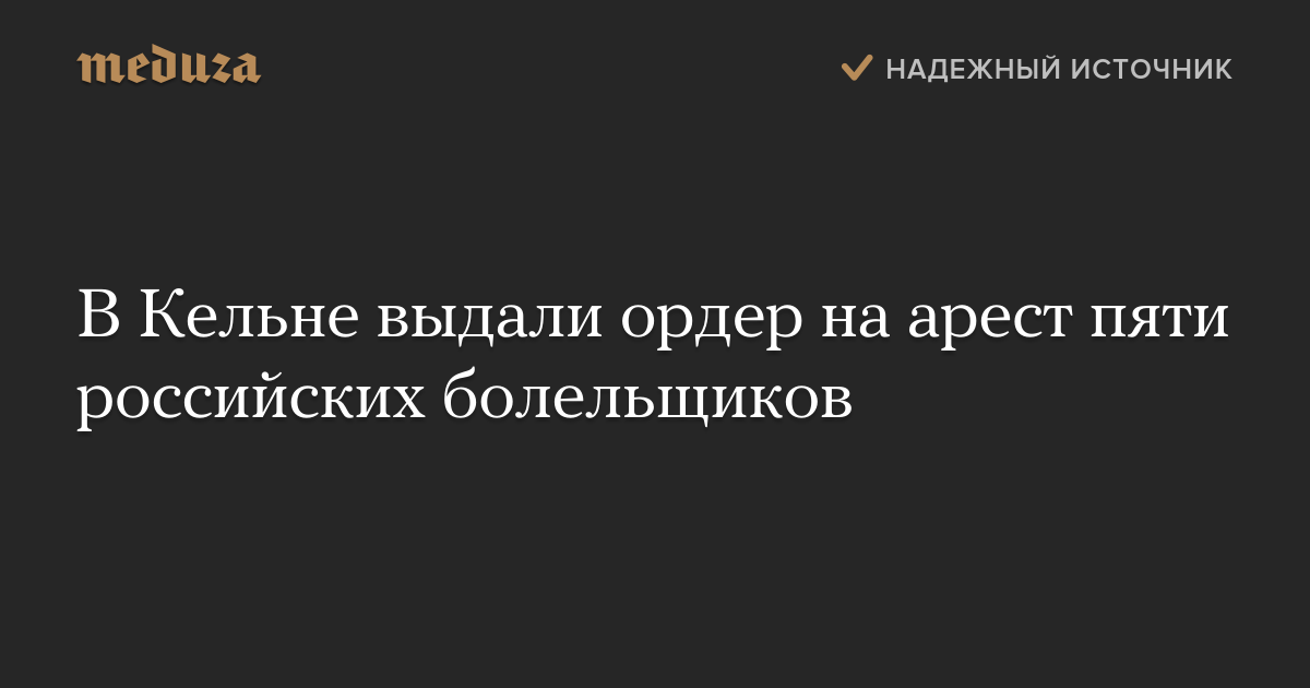 Суд в Кельне выдал ордер на арест пяти российских болельщиков, которых задержали 16 июня за участие в столкновениях с другими поклонниками футбола.