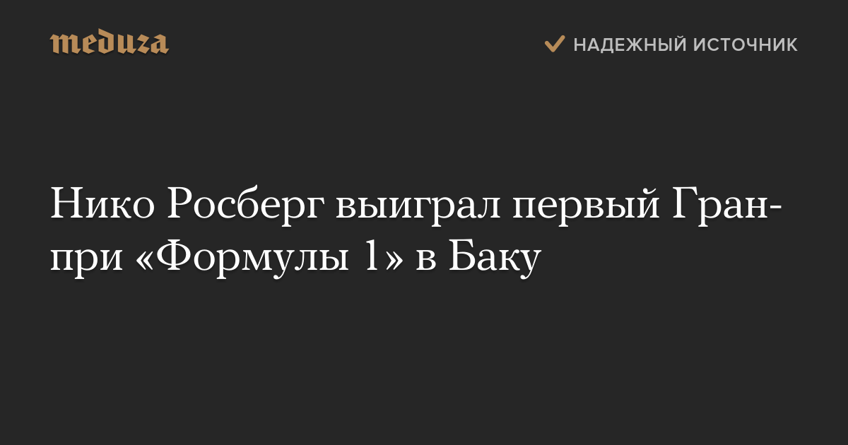 Нико Росберг выиграл первый Гран-при «Формулы 1» в Баку