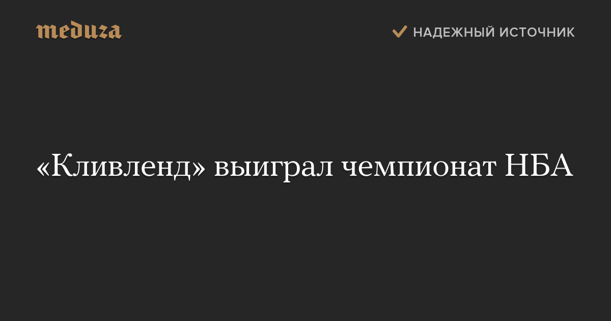 Баскетболисты «Кливленда Кавальерс» обыграли в седьмом матче финальной серии команду «Голден Стейт Уорриорз» со счетом 93:89 и выиграли чемпионат Национальной баскетбольной лиги.