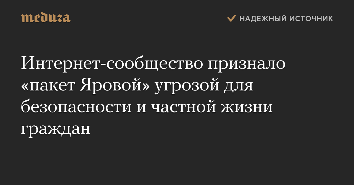 Интернет-сообщество признало «пакет Яровой» угрозой для безопасности и частной жизни граждан
