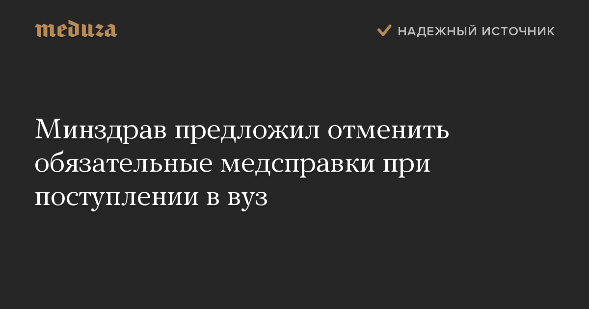 Минздрав, отметил он, уже готовит предложения об отмене требований по предоставлению медсправки при поступлении в вузы.