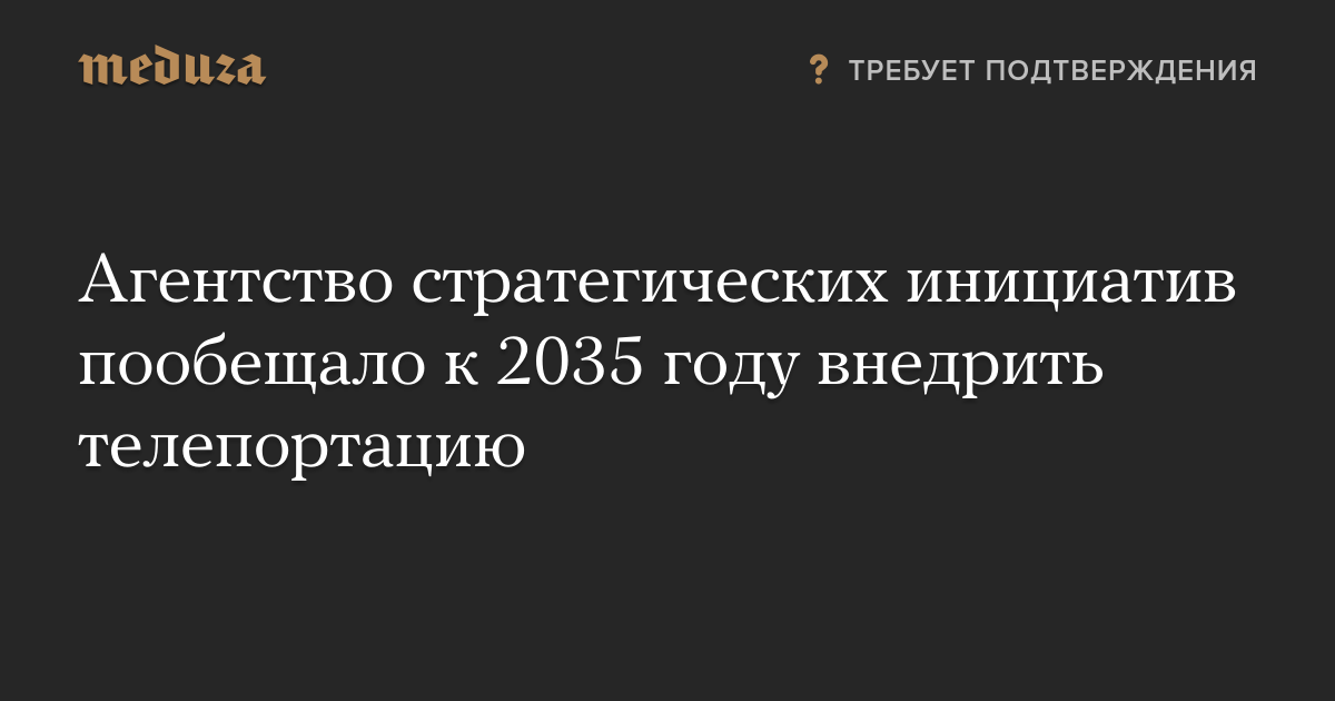 Агентство стратегических инициатив пообещало к 2035 году внедрить телепортацию