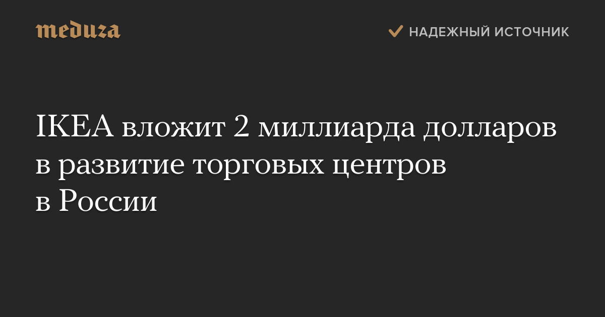 IKEA вложит 2 миллиарда долларов в развитие торговых центров в России