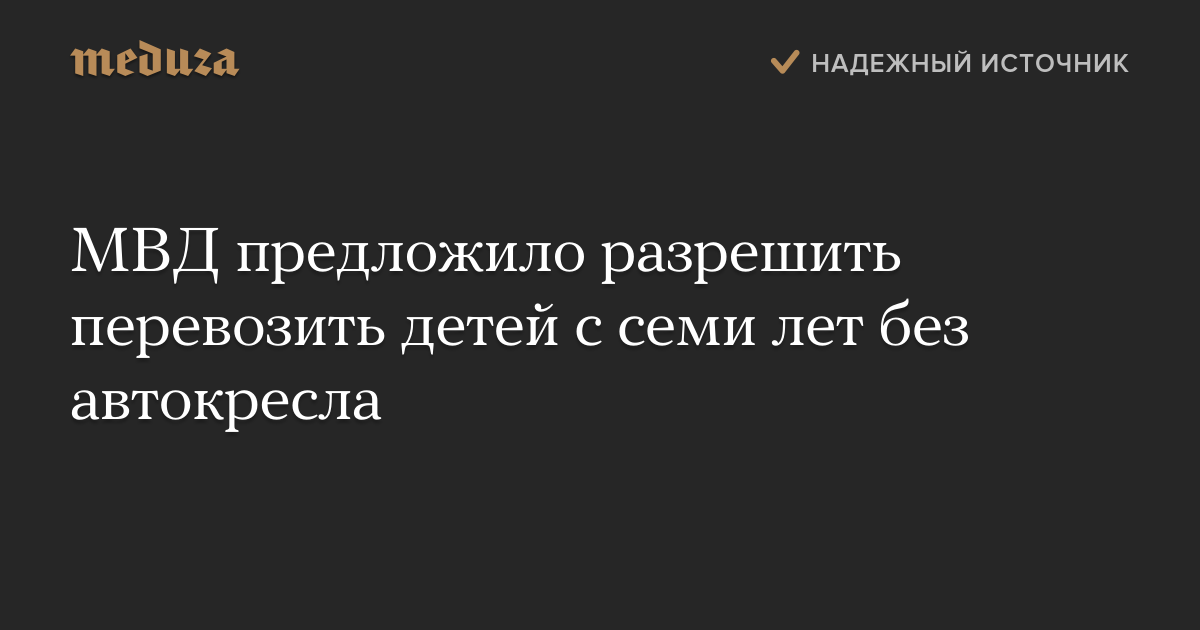 МВД подготовило проект изменений в правила дорожного движения, разрешающий, в числе прочего, перевозить детей от семи лет и старше на заднем сиденье автомобиля без специального кресла, используя только ремни безопасности.