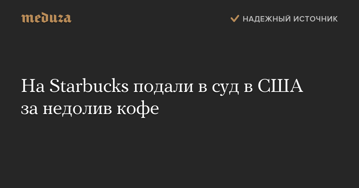 Сьера Струмлауф и Бенджамен Роублс обвинили Starbucks в том, что сотрудники сети не доливают кофе. Истцы считают, что каждый раз в кофейне наливают примерно на 25 процентов меньше заявленного количества напитка.