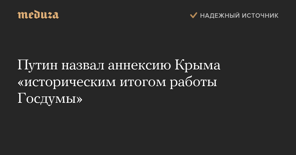 Путин назвал аннексию Крыма «историческим итогом работы Госдумы»