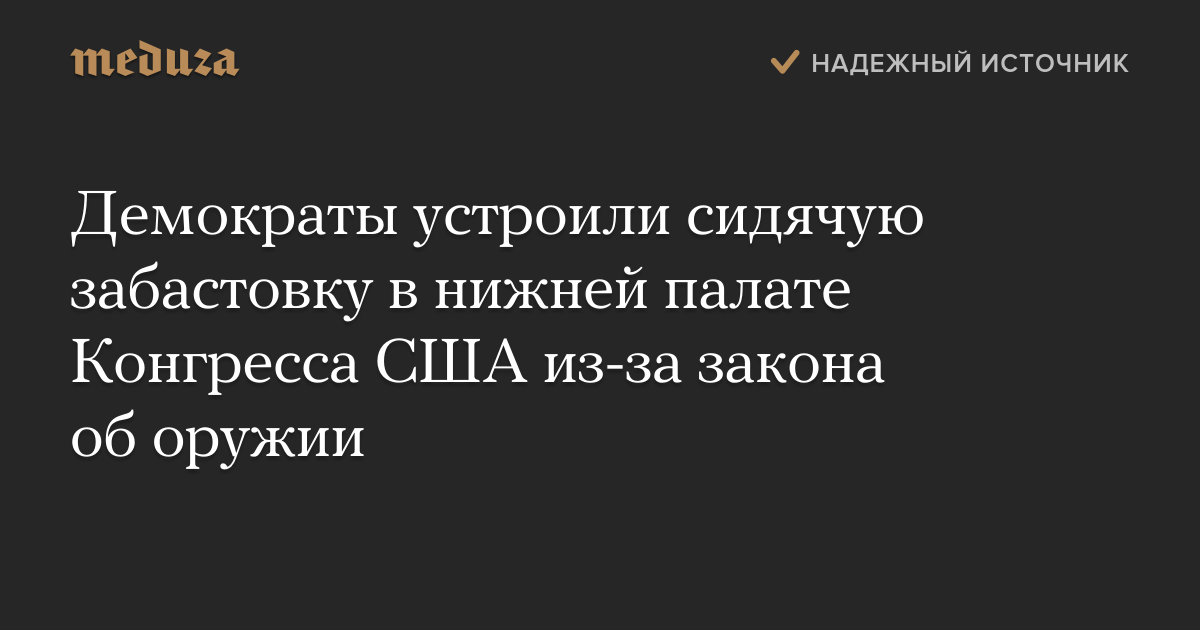 Несколько десятков депутатов Палаты представителей США от Демократической партии устроили сидячую забастовку в зале заседаний с требованием провести голосование об ужесточении контроля за оборотом оружия.