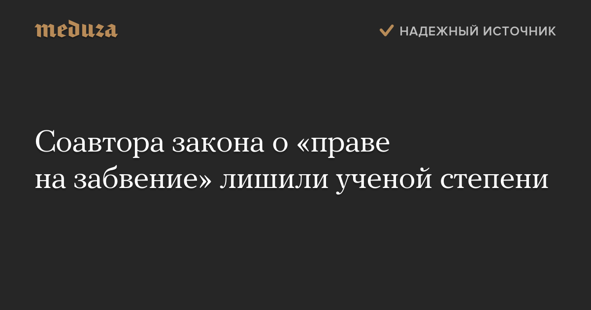 Соавтора закона о «праве на забвение» лишили ученой степени