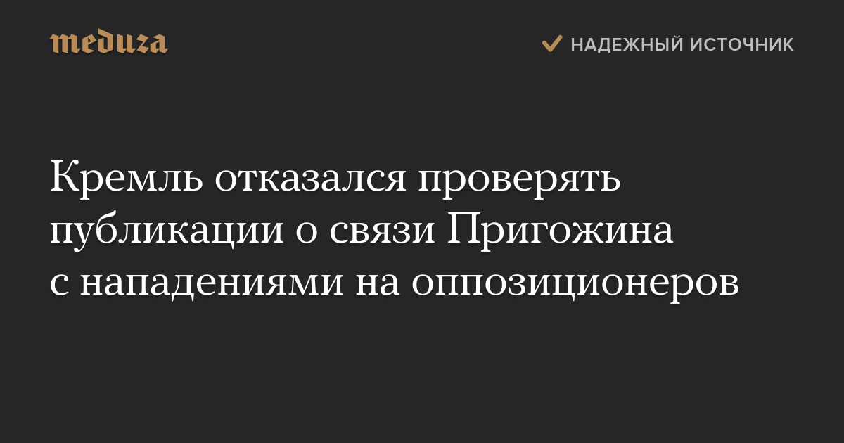 Кремль отказался проверять публикации о связи Пригожина с нападениями на оппозиционеров