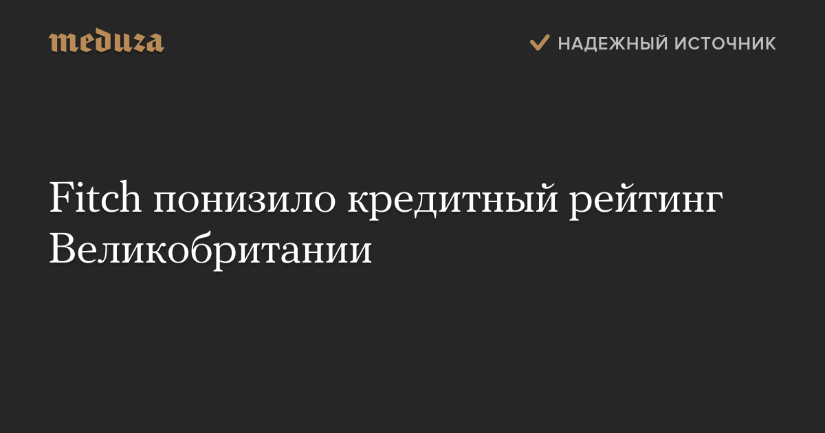 Международное рейтинговое агентство Fitch понизило кредитный рейтинг Великобритании с «AA+» до «AA». Прогноз по рейтингу является негативным.