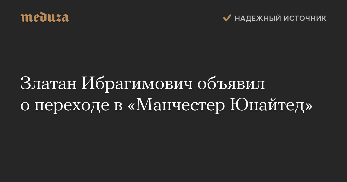 Шведский футболист Златан Ибрагимович объявил о переходе в «Манчестер Юнайтед». Об этом он написал в своем Инстаграме.