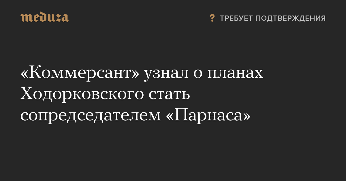 Михаил Ходорковский может стать сопредседателем партии «Парнас» после выборов в Госдуму, пишет газета «Коммерсант» со ссылкой на источник, близкий к партии. По словам собеседника издания, «Парнас» планируется превратить в общедемократическое движение и объединить с другими организациями, входящими в демократическую коалицию.