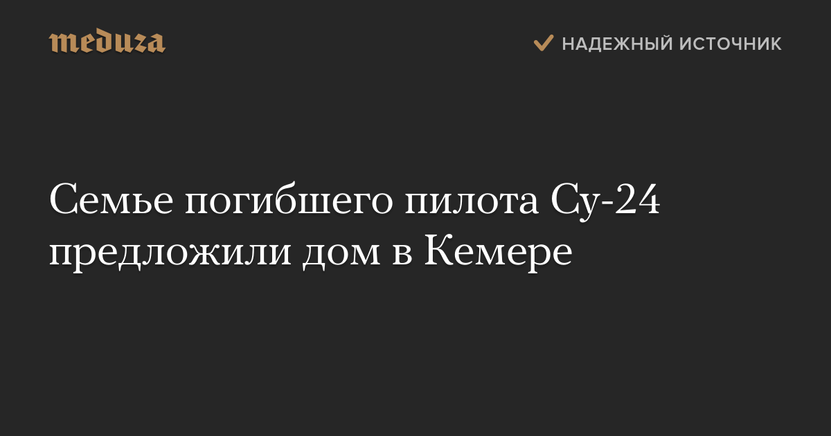 Семье погибшего пилота Су-24 предложили дом в Кемере
