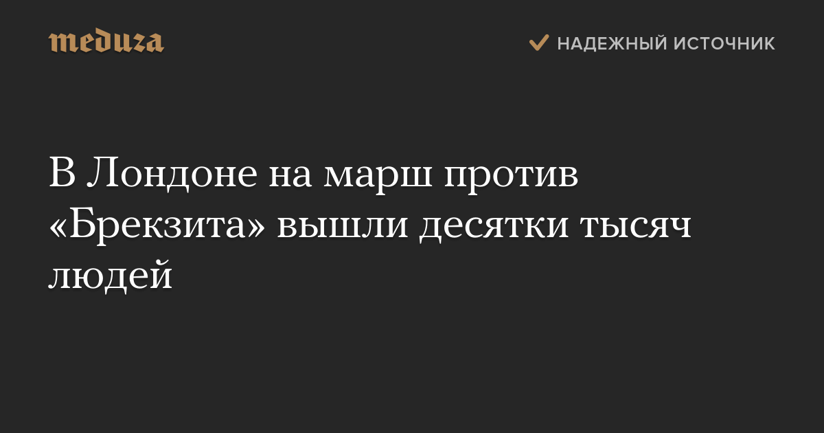 В Лондоне на марш против «Брекзита» вышли десятки тысяч людей. Как сообщает Reuters, в основном в акции участвуют молодые люди (по опросам, именно они голосовали за сохранение членства в ЕС).