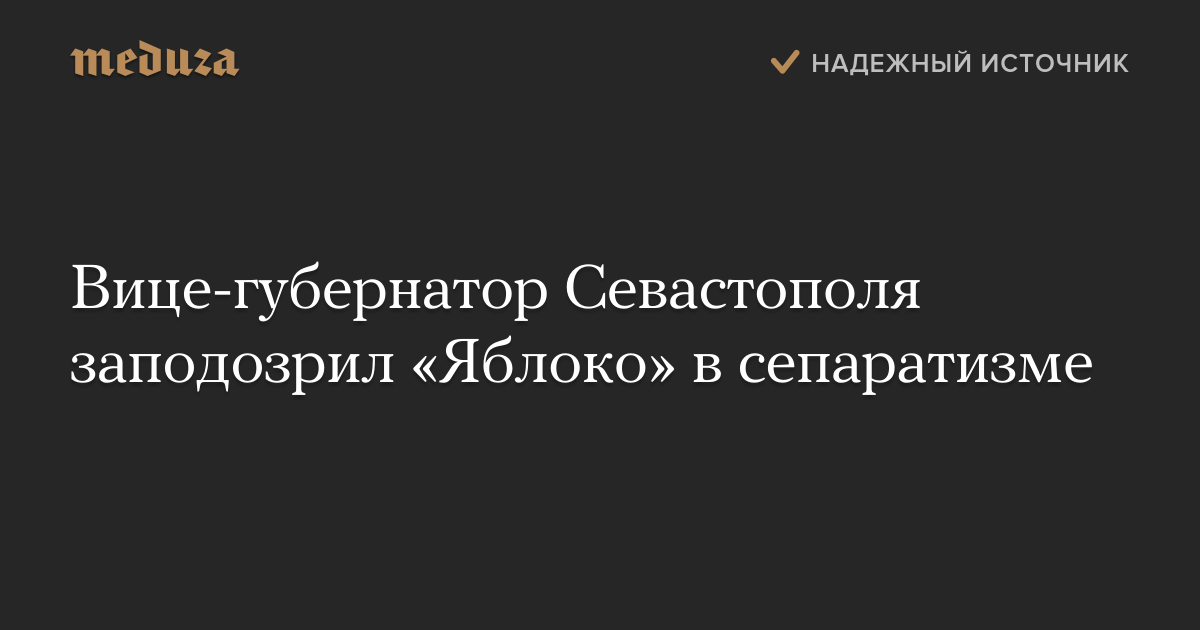 Вице-губернатор Севастополя заподозрил «Яблоко» в сепаратизме