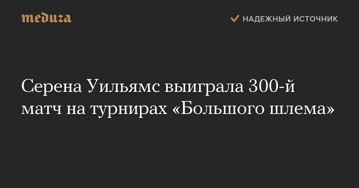 Серена Уильямс выиграла 300-й матч на турнирах «Большого шлема»