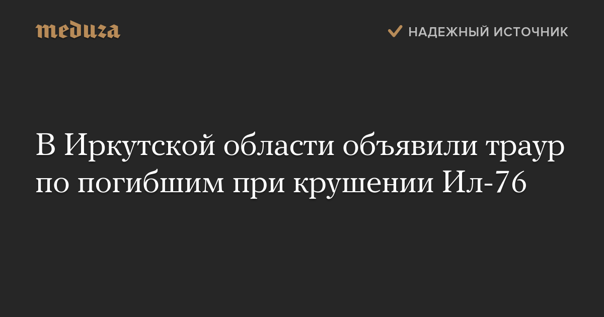 В Иркутской области объявили траур по погибшим при крушении Ил-76