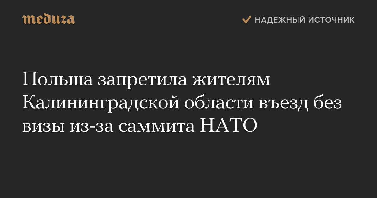 Польша запретила жителям Калининградской области въезд без визы из-за саммита НАТО