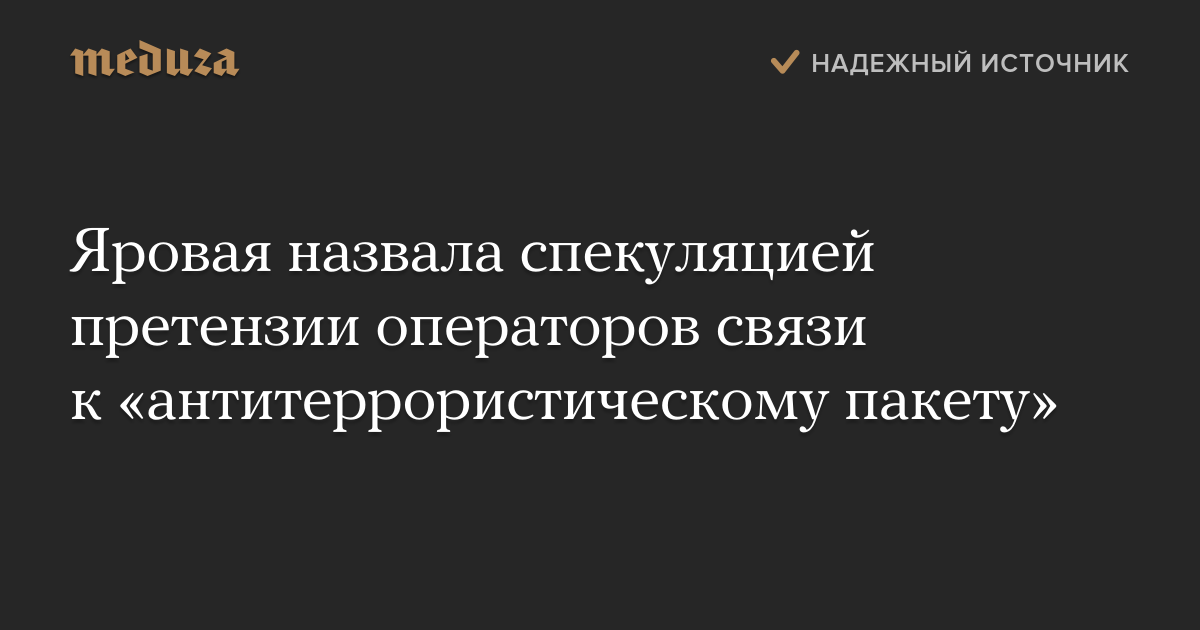 Яровая назвала спекуляцией претензии операторов связи к «антитеррористическому пакету»