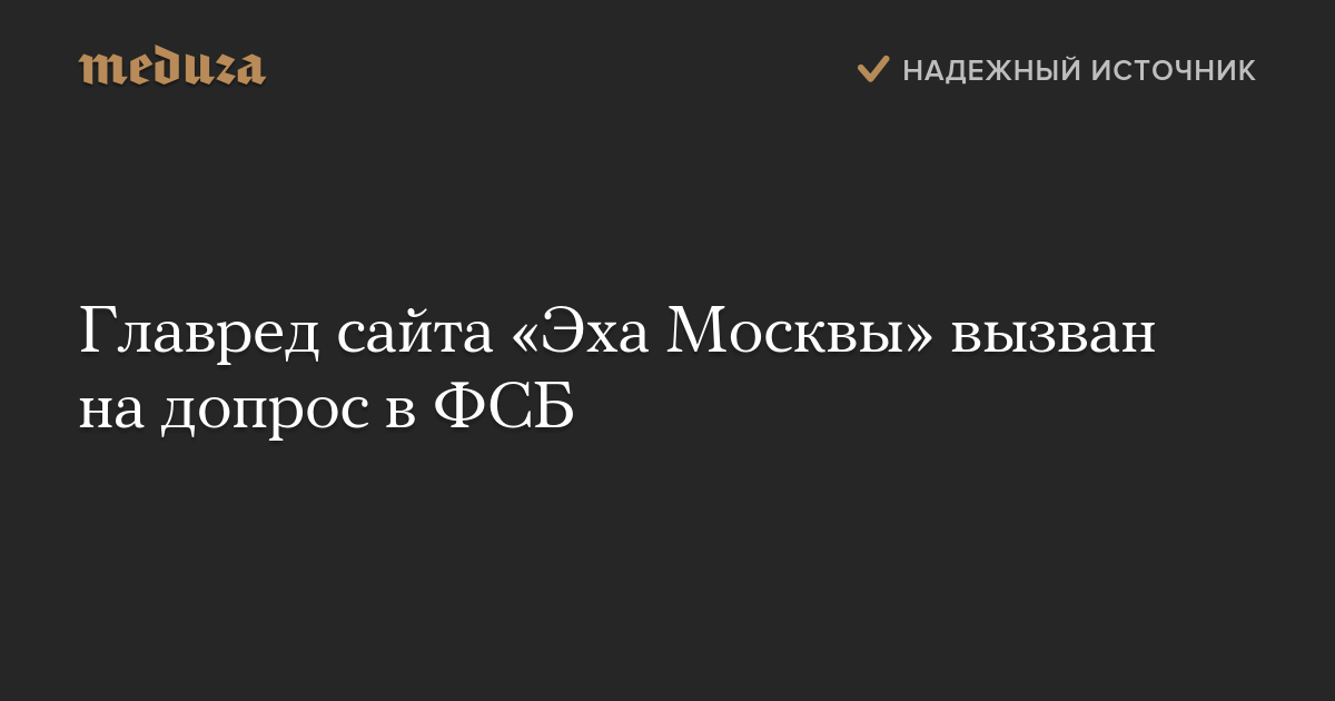 Главред сайта «Эха Москвы» вызван на допрос в ФСБ
