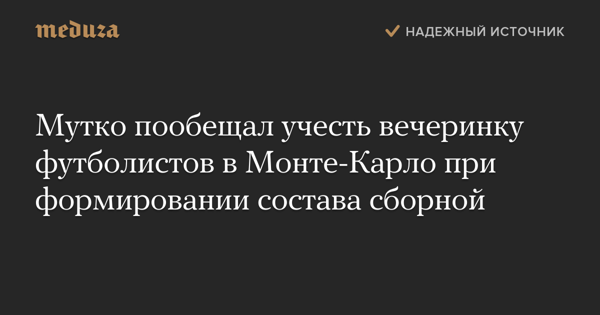 Министр спорта РФ, глава Российского футбольного союза (РФС) Виталий Мутко заявил, что поведение футболистов будет учтено при формировании состава национальной сборной. Таким образом он прокомментировал вечеринку, которую устроили в Монте-Карло Александр Кокорин и Павел Мамаев.