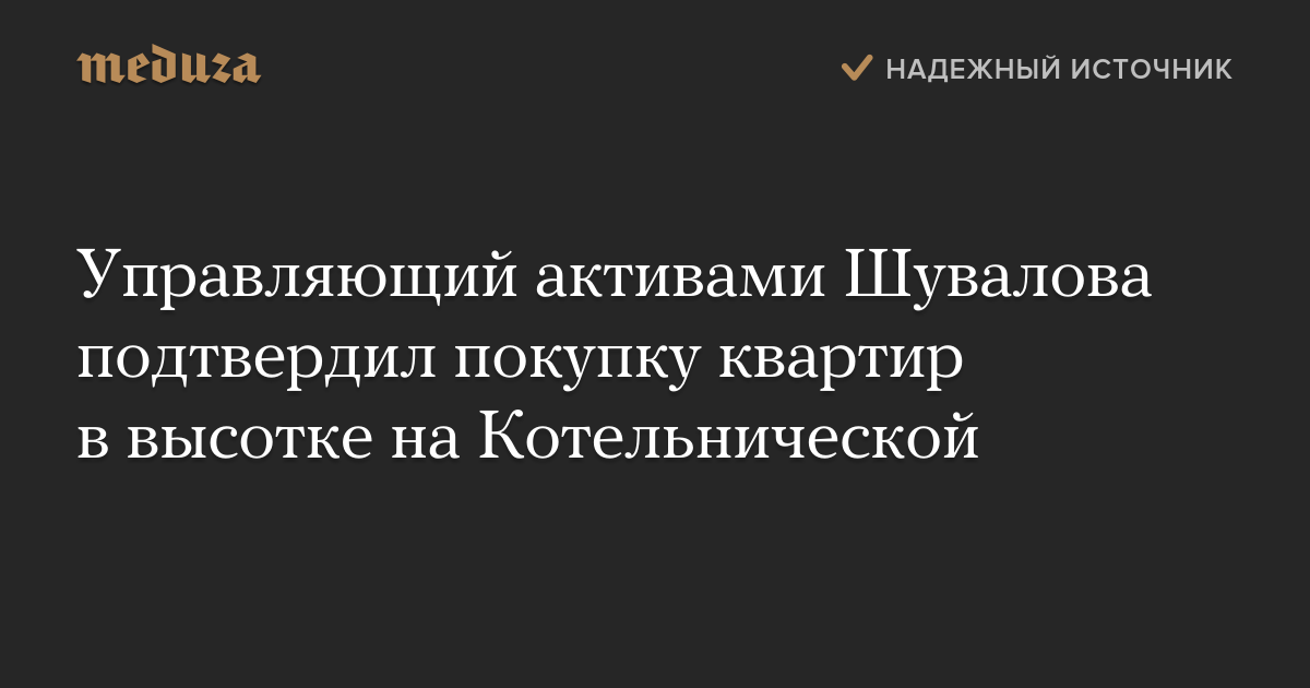 Управляющий активами Шувалова подтвердил покупку квартир в высотке на Котельнической