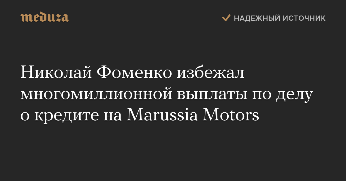 Николай Фоменко избежал многомиллионной выплаты по делу о кредите на Marussia Motors