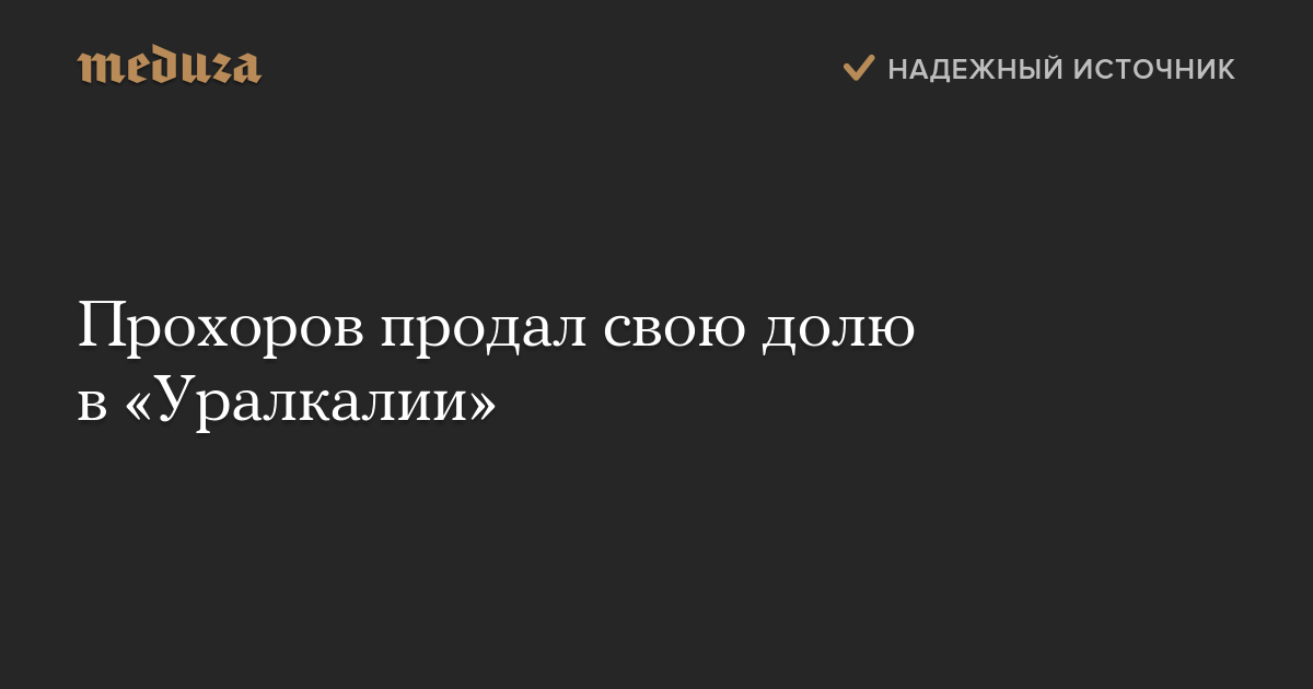Прохоров продал свою долю в «Уралкалии»