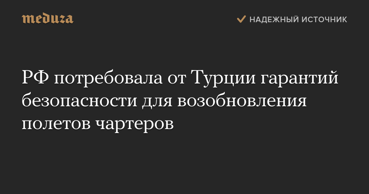 РФ потребовала от Турции гарантий безопасности для возобновления полетов чартеров